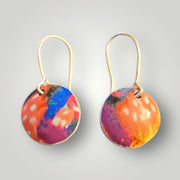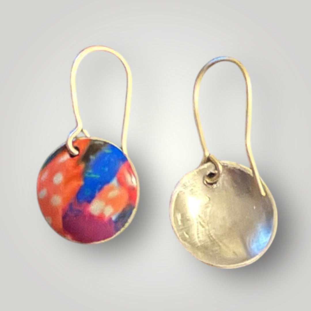 Stylish, subtle and effortlessly wearable, these small disc earrings are crafted from hand-dyed and hand-printed aluminium in a fresh mid green. Each pair is individually made, so the colour pattern is entirely unique.